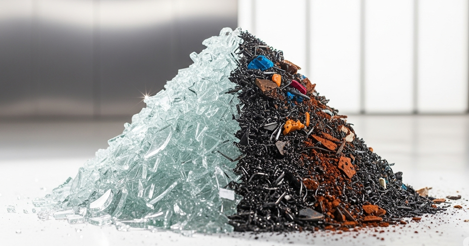 O vidro é frequentemente celebrado como um material “mágico” por sua capacidade de ser infinitamente reciclado sem perda de qualidade. No entanto, a realidade da reciclagem, especialmente para vidros planos, apresenta desafios complexos. O principal obstáculo é a contaminação. No vidro arquitetônico, resíduos de esquadrias de alumínio podem comprometer um lote inteiro de produção de vidro float. Da mesma forma, no setor automotivo, o vidro laminado, se não for devidamente separado, acaba triturado com outros materiais, tornando sua reciclagem inviável.