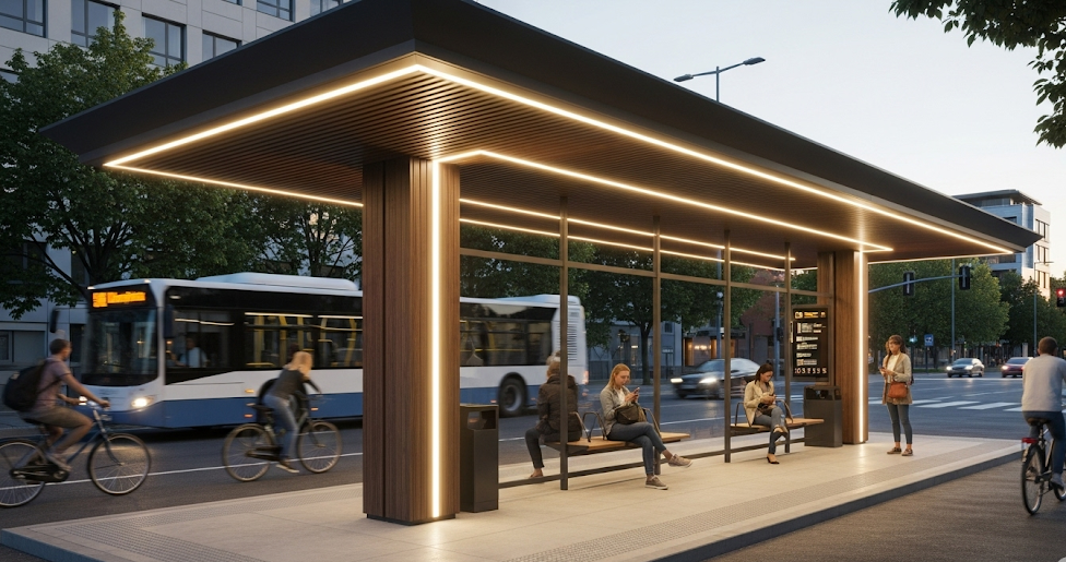 Segurança, design e funcionalidade se unem em pontos de ônibus, displays e sinalizações modernas.